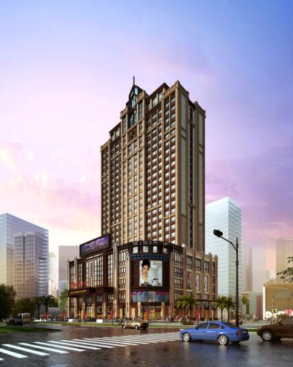 整个地块为方形体,基地地形平缓,对于大厦的总体布局和规划设计综合考虑了用地条件,功能布局,通风采光,建筑造型,群体组合和空间环境。建筑设计往往受到用地条件的限制,此项目也不例外,由于大厦位于火车站的边陲,服务范围也只能向西南方辐射(东北方为铁路干线),所以在功能配套上,我们也给予了全方位的考虑,以酒店为主体,大型商业、娱乐、休闲、办公、商务为附属服务设施,六大功能组合于一体,使大厦的可持续发展得到保障。在建筑总平面不值时,对沿街广场进行了退让,并将酒店主楼区对商业广场中轴线,兴城商业广场的底景,与火车站广场相毗邻是大厦的一大优势,有利于人流的集合和交通疏散。